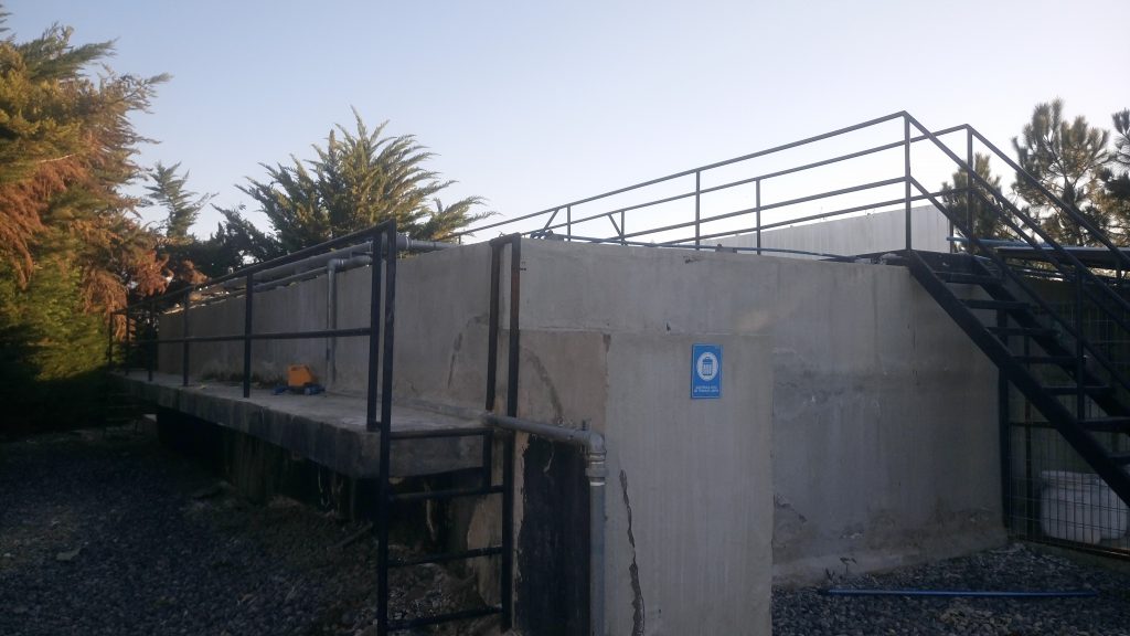 Finalizado el proceso, el agua se almacena en un estanque de hormigón de 300 m3 y un estanque metálico 100 m3, los cuales garantizan el suministro a las personas del sector de los niches.